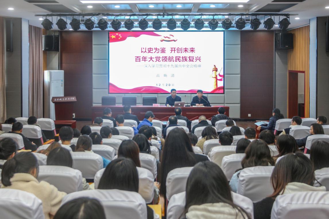 12月20日,公司党委书记高焕清在教育楼201报告厅为永利yl23411官网师生宣讲十九届六中全会精神,永利yl23411官网全体教职工和部分员工代表参加了宣讲会,会议由会计公司党总支书记镇咸辉主持。
