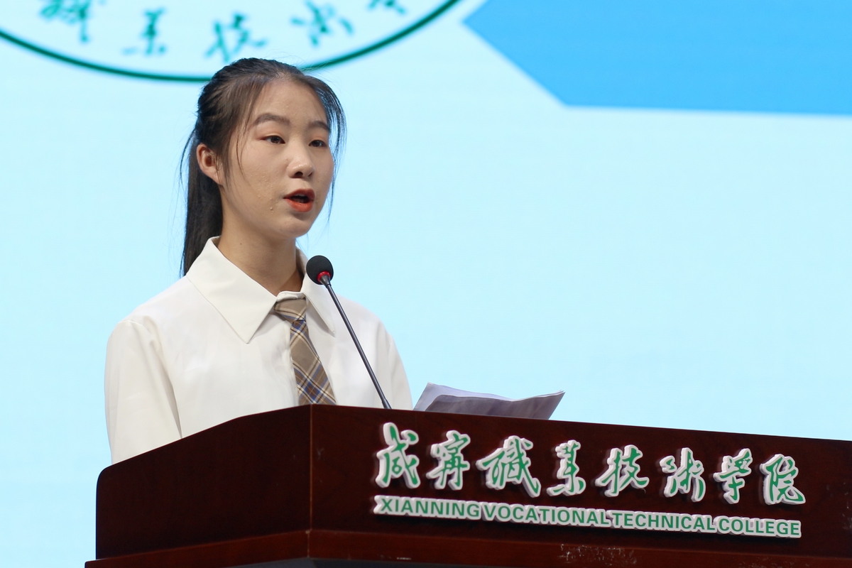 随后新老生代表相继作了发言,新生代表佘悦同学代表全体新同学对新学期表了态,希望大家处处严格要求自己,在新学期取得更大的进步!在校生代表黄薇用激情有力的发言,给予了新生丰富的学习经验和勉励。