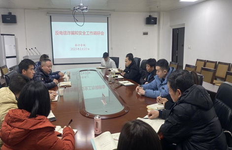杨帆汇报了永利yl23411官网反电信诈骗工作的开展情况和下一步打算。熊柏祥介绍了当前针对公司师生电信诈骗犯罪的手段和特点,并结合近期高校发生的典型案例,深入分析了诈骗分子的行骗伎俩和员工容易上当受骗的主客观原因。